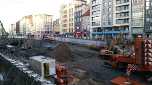 BraboII Antwerp Bamcontractors start met plaatsen van de dakplaat Operaplein.